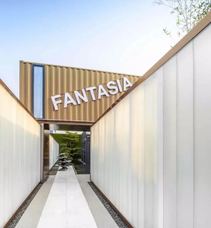 客戶從極具儀式感的廊道走近集裝箱銷售中心。
