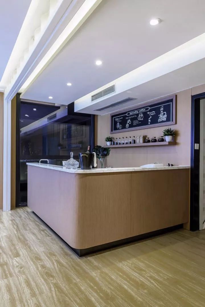水吧的設(shè)置,為客戶營造了輕松愉悅的洽談氛圍。