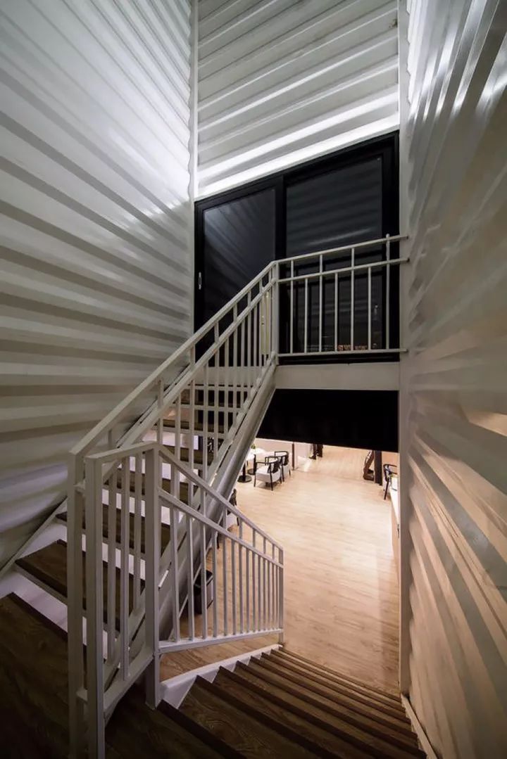國內(nèi)大多數(shù)設(shè)計(jì)單位普遍對集裝箱缺乏深刻理解,難以將集裝箱的優(yōu)點(diǎn)發(fā)揮到極致;而集裝箱制造商又無法把控建筑的功能和美感。這是一家集裝箱設(shè)計(jì)制造一體化的公司,他們包攬了這組集裝箱建筑的全流程:建筑設(shè)計(jì)、室內(nèi)設(shè)計(jì)、集裝箱制造和改造、保溫隔熱、內(nèi)部裝修、門窗、空調(diào)、燈光、景觀平臺、運(yùn)輸、吊裝合現(xiàn)場安裝等等。
