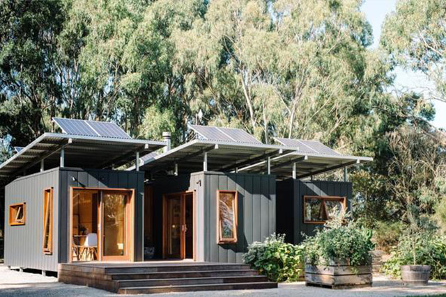 一對設計師夫婦把三個集裝箱改造成了一個530平方英尺的太陽能住宅,坐落在他們的家庭農場上。 模塊化家居公司Modhouse的設計師艾米·普蘭克(Amy Plank)和理查德&middo...