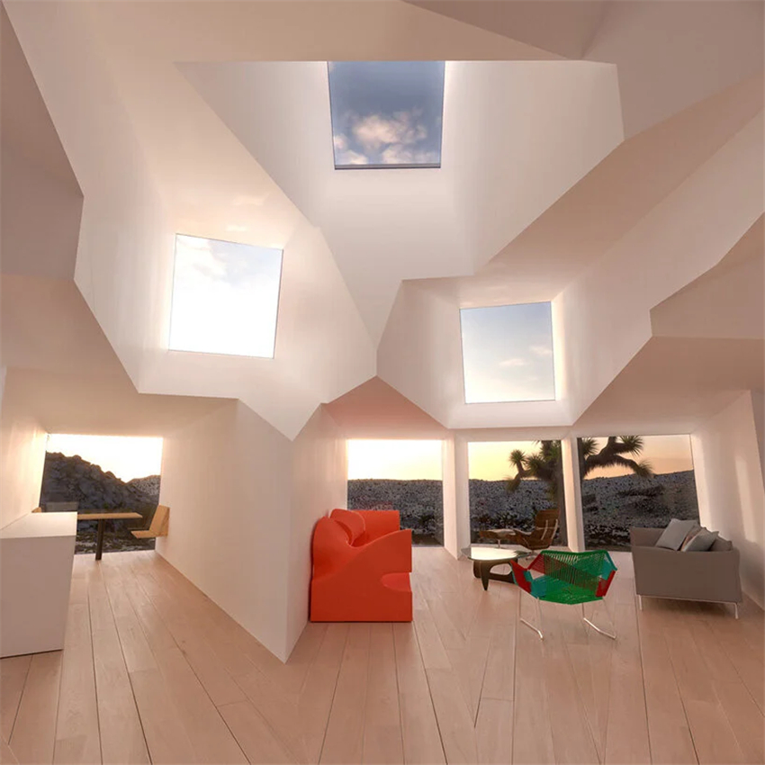 而外墻則采用了白色的配色,在約書亞樹國家公園的荒漠中,顯得非常亮眼。