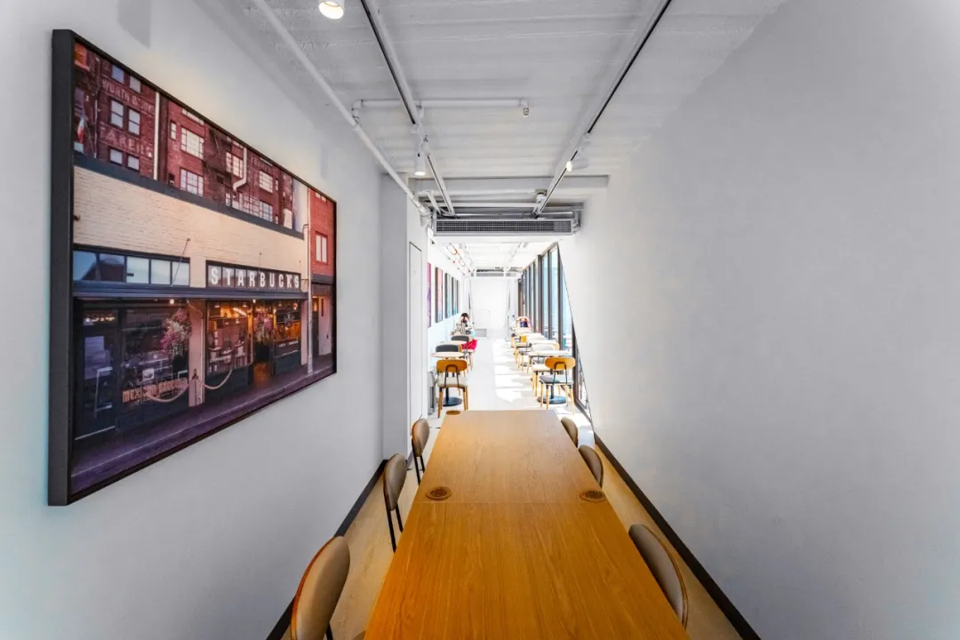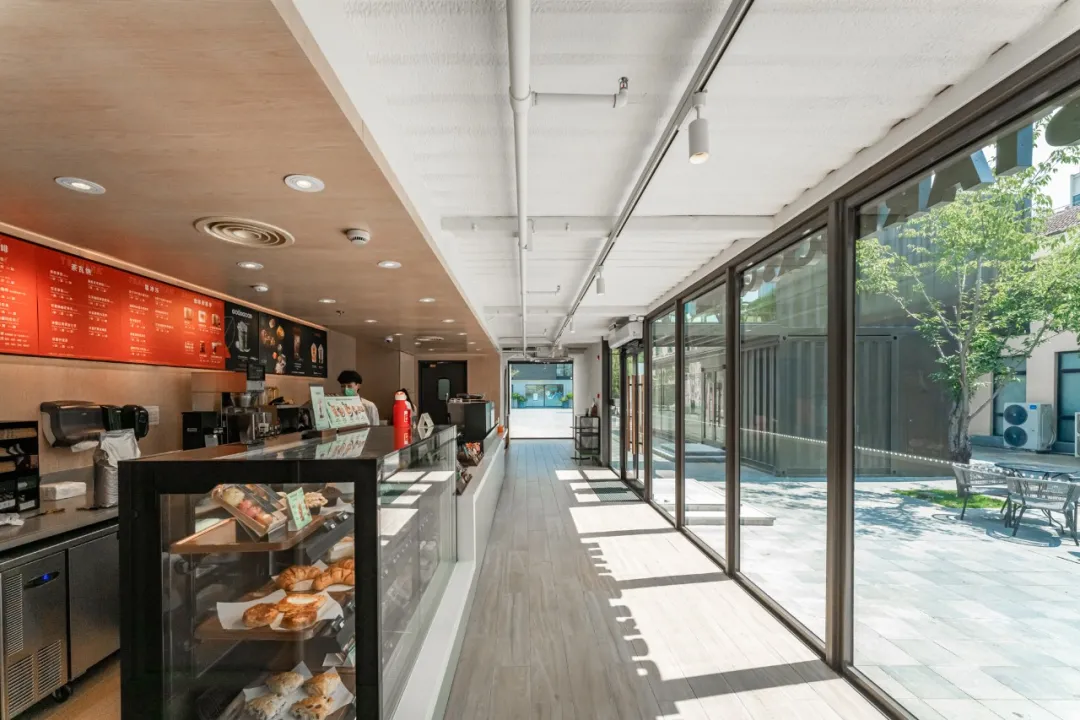 集裝箱的盡頭則是一處很適合開會辦公的小型會議室,墻上掛著歷史上第一家星巴克的照片,你可以一窺歷史與現代之間的文化交流,感受漫長歲月的變遷。除了室內休息區和連廊還有兩個室外露臺,等天氣再涼爽一些坐在這里吹吹風,放下一切煩擾,靜靜地望著藍天白云,獨享這一刻的安逸與靜謐。