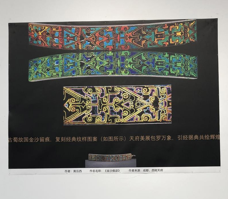 展廳內(nèi)一件作品的圖樣參考了金沙文物和古蜀傳說