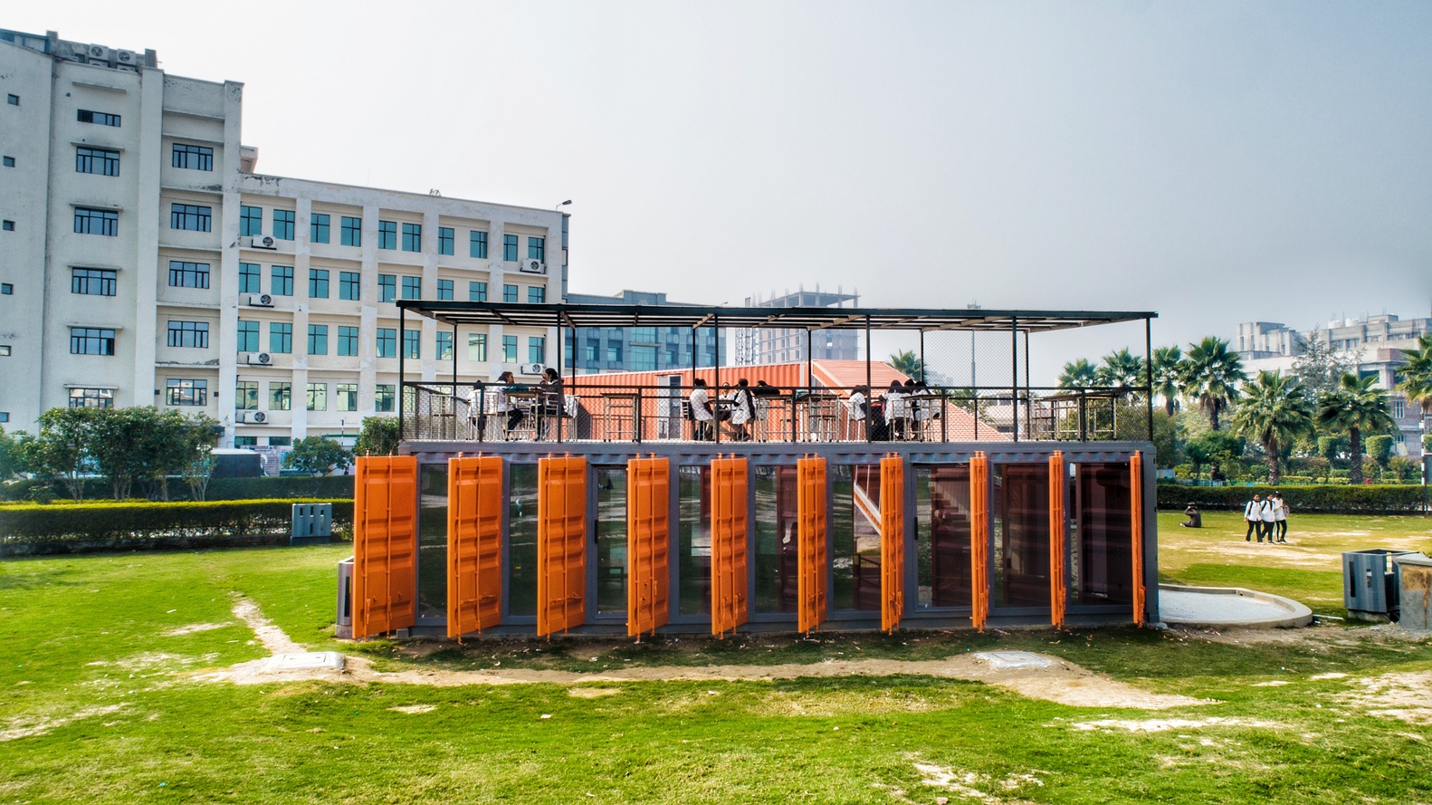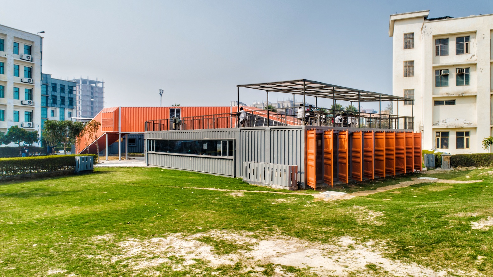 Cafe Infinity學生中心,交叉的彩色集裝箱